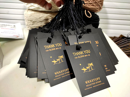 ป้ายแท็กสินค้าที่ทางร้านเราผลิต ขึ้นอยู่กับรูปแบบการไดคัท และจำนวนการผลิตแต่ละ lot ค่ะ เรทราคาก็จะแตกต่างกัน และขึ้นอยู่กับเทคนิคการพิมพ์ต่างๆ เช่น ปั๊มเคทอง, spot uv, เป็นต้น